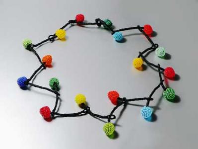 | Beschreibung: | Schmuck aus Rocailles Perlen (Glas), Beerelikette farbig, handgeflochtene Zwischenstücke aus Papiergarn |